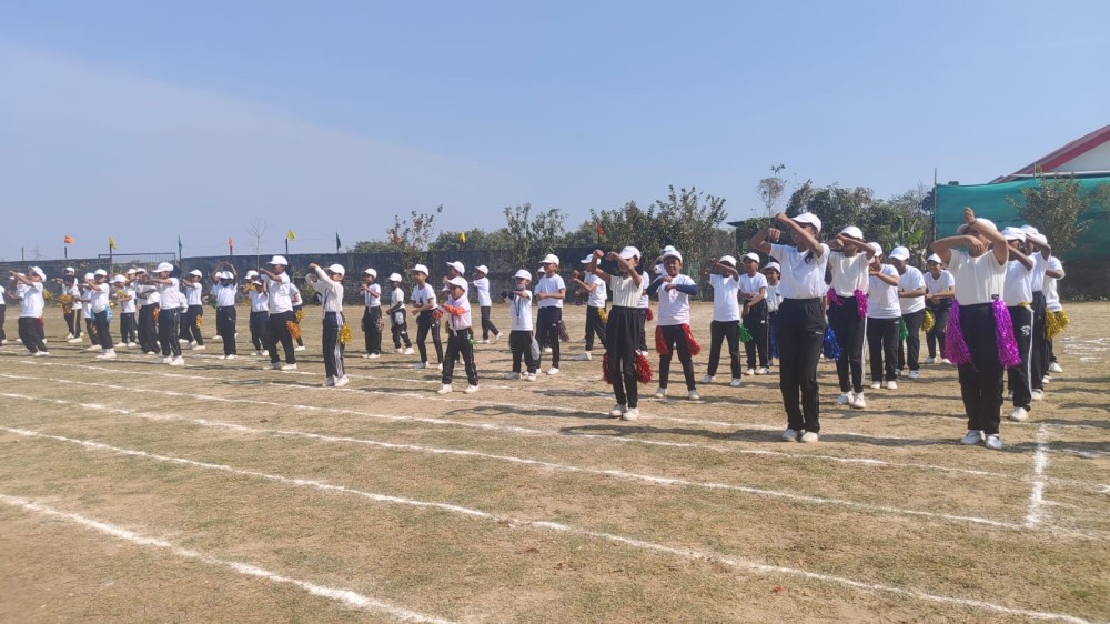 The Annual Sports Meet promotes physical fitness, teamwork, discipline, and sportsmanship through track and field events, house competitions, and mass drills.